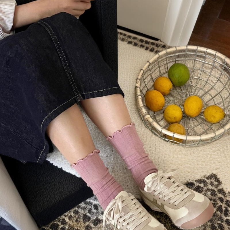 ● 木耳邊堆堆設計,時尚又可愛,輕鬆搭配各類鞋履,展現個性穿搭品味。