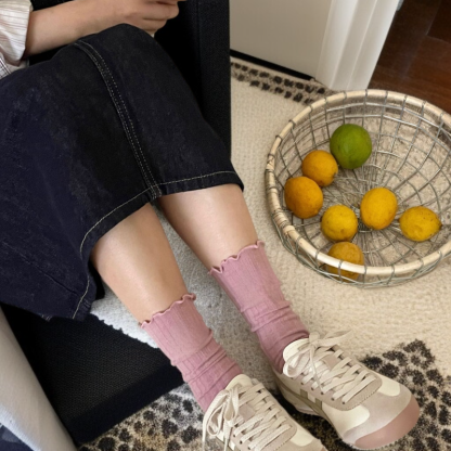 秋冬新款木耳邊堆堆襪棉質中筒襪